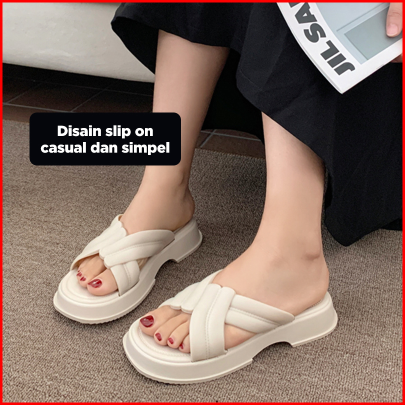 Coolrain Sandal Wedge Wanita Slip On Tali Silang Sandal Pesta Terbaru Size 36-41 Hsn208