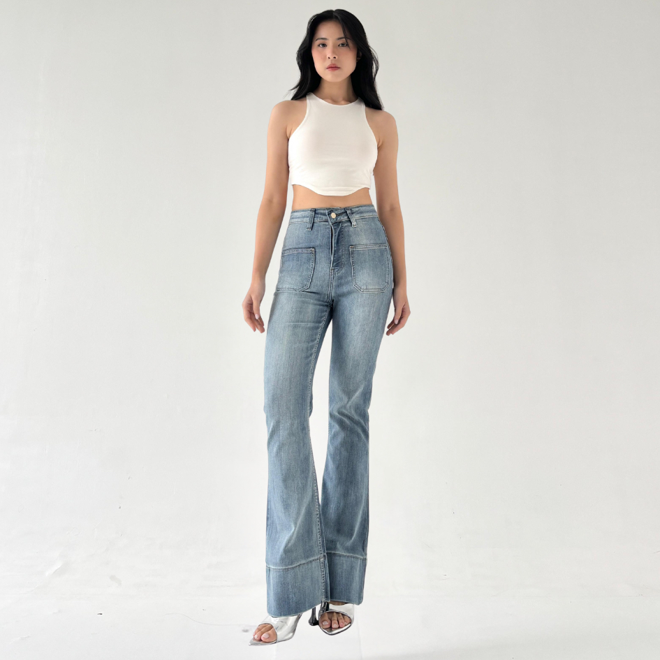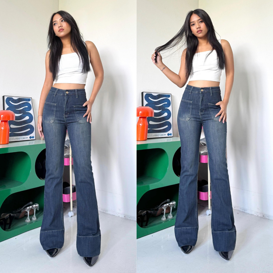 LADOUCE - Kelly High Waist Cutbray Jeans Celana Stretch Flare Panjang Wanita