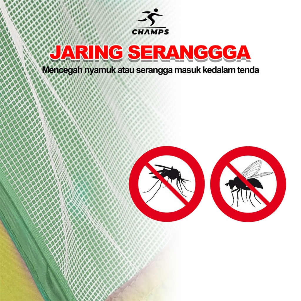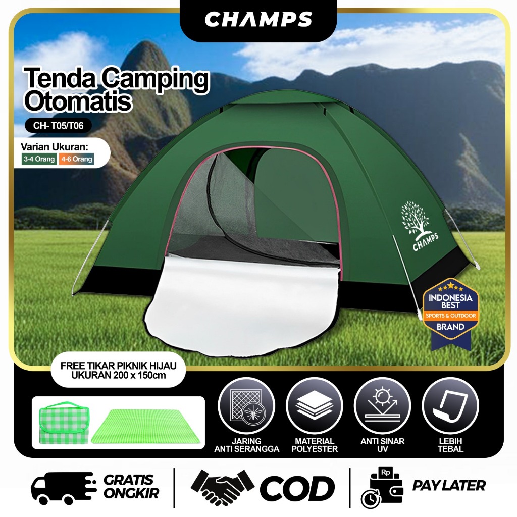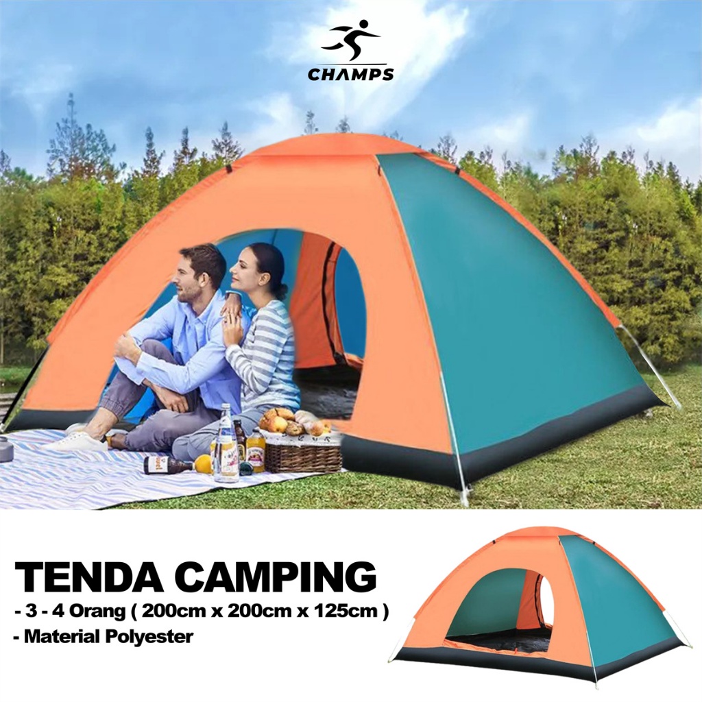 CHAMPS Tenda Otomatis Murah – Tenda Camping Anti Air + Tas, Lipat Praktis untuk 2–4 Orang + FREE TAS