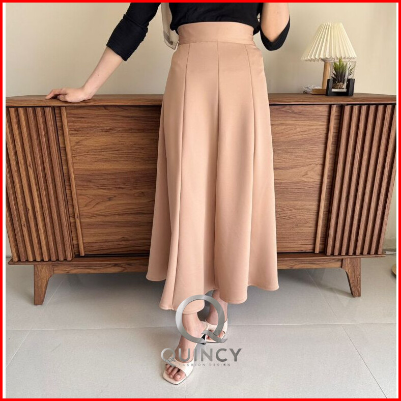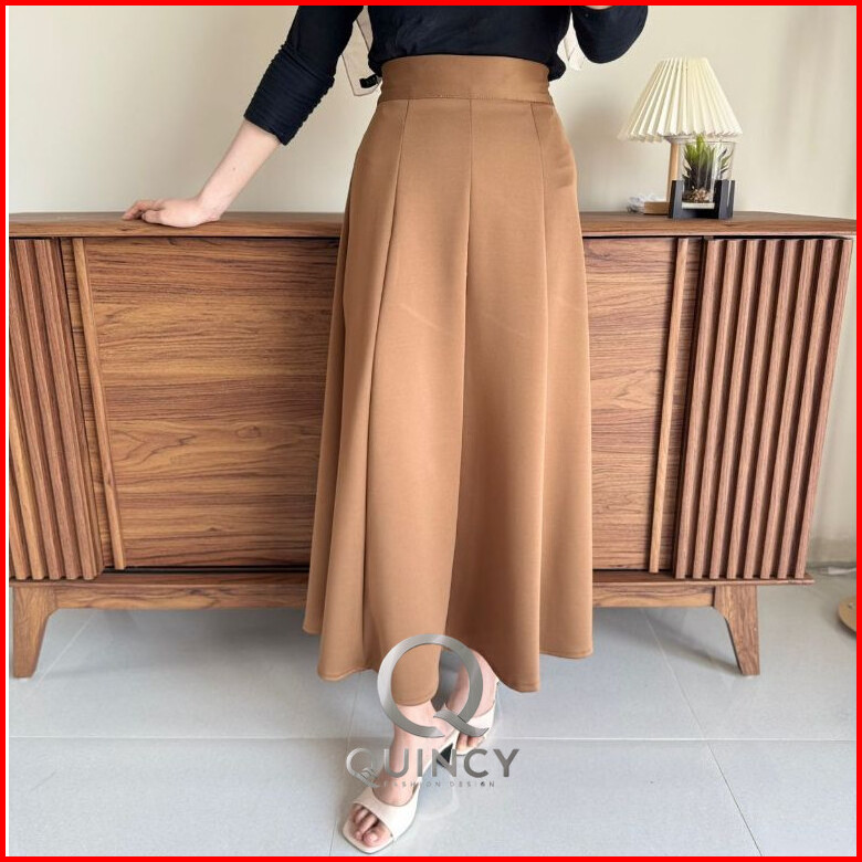 Haruka Skirt - Korean Loose Maxi Skirt Rok Wanita Anti Kusut Polyester - Rok Flare Wanita - Rok Basik Polos - Maxi Skirt