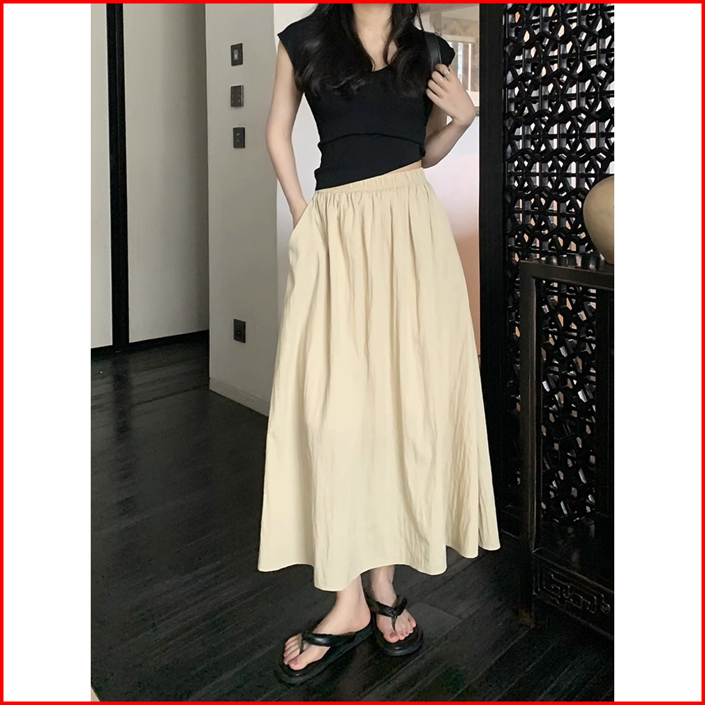 Korean Skirt A-line Polos Rok Wanita Rok Pinggang Tinggi