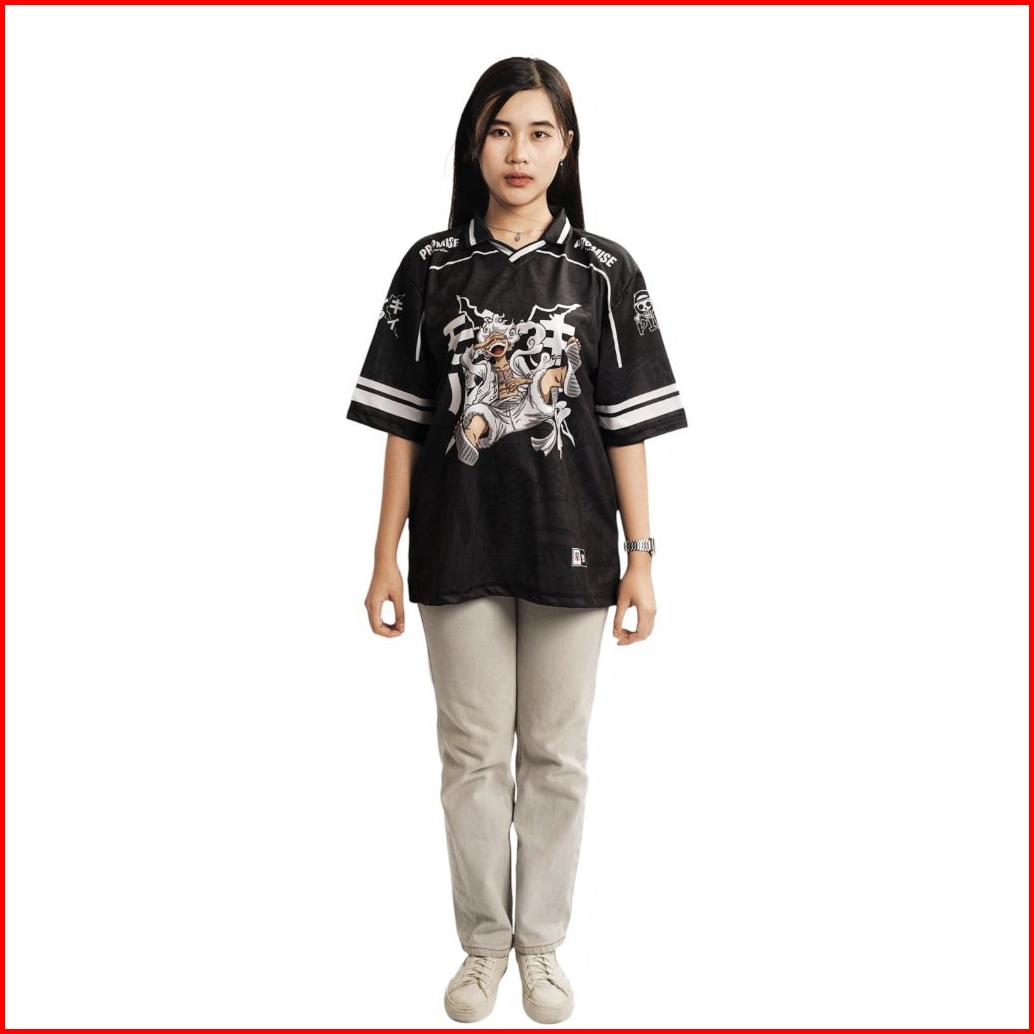 Jersey Boxy Oversize Jumbo Promise Onepiece Luffy Gear 5 Vintage Skena Pria Wanita Sport Big Size Hitam Putih