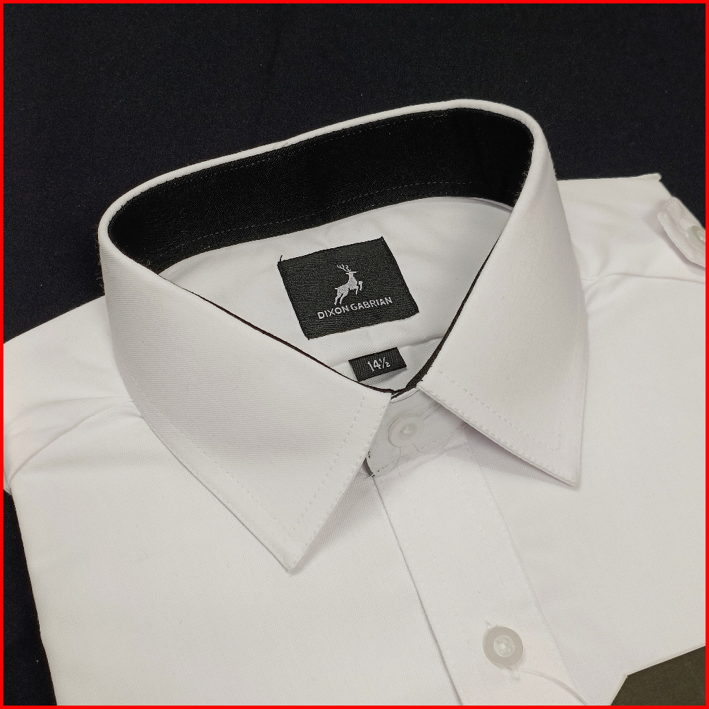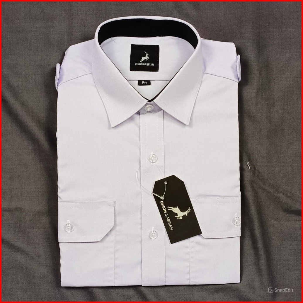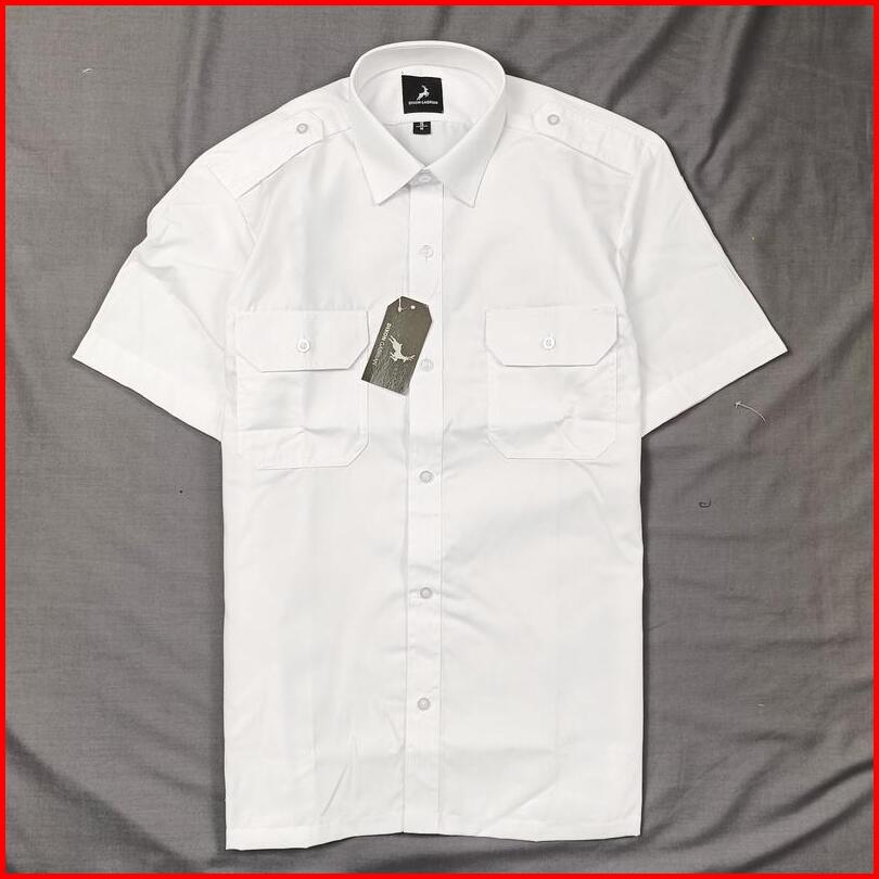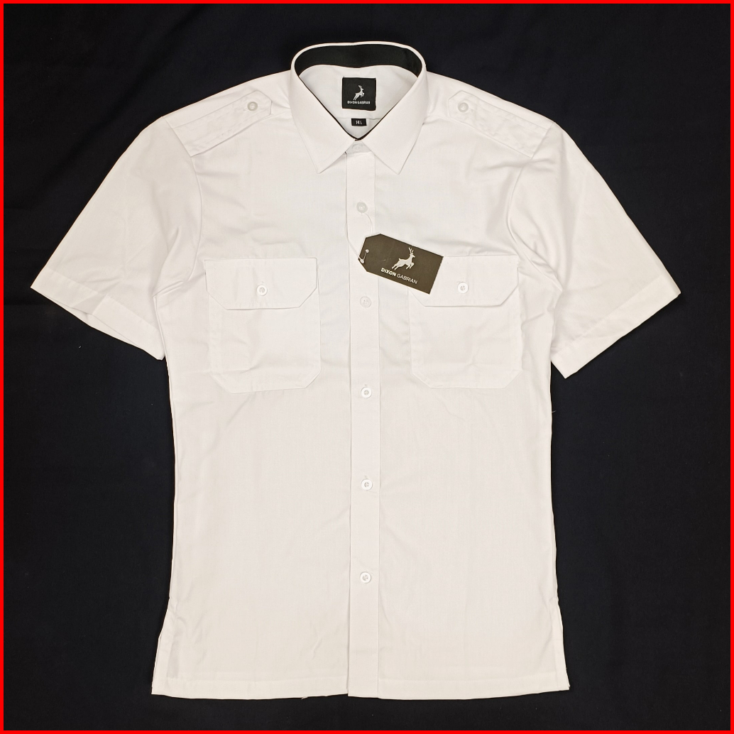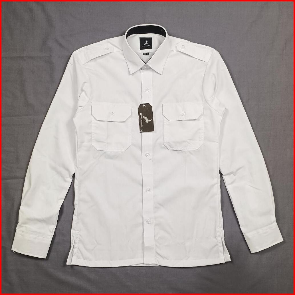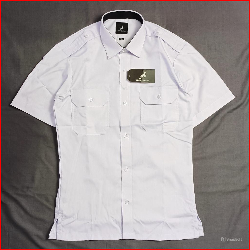 Kemeja Pria Putih Dinas Pilot Kantong Dua Slimfit Dixon Gabrian Lengan Pendek Dan Panjang