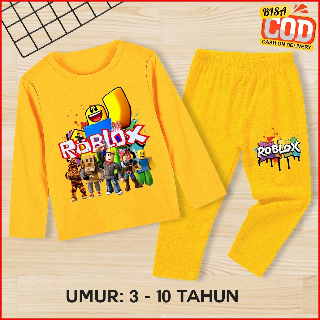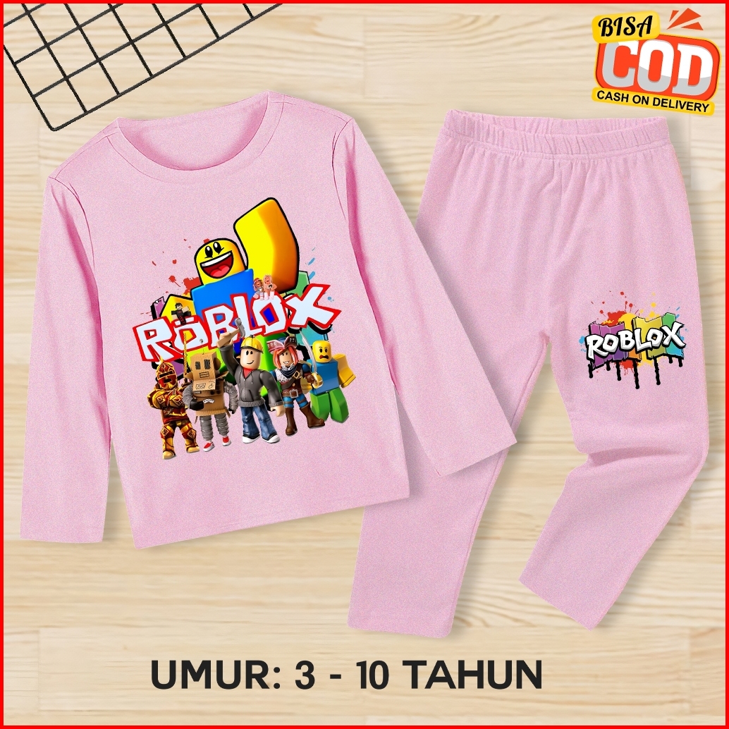 Stelan Kaos Baju Lengan Panjang Motif Gambar Roblox Set Anak Laki -laki Perempuan Usia 1-10 Tahun