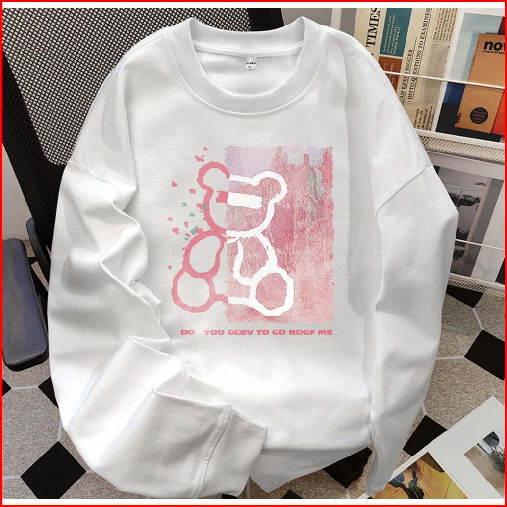 Jessica Kaos Lengan Panjang Tangan Karet Kaos Oversize Wanita Motif Beruang Bear Pink Bahan 100 Cotton