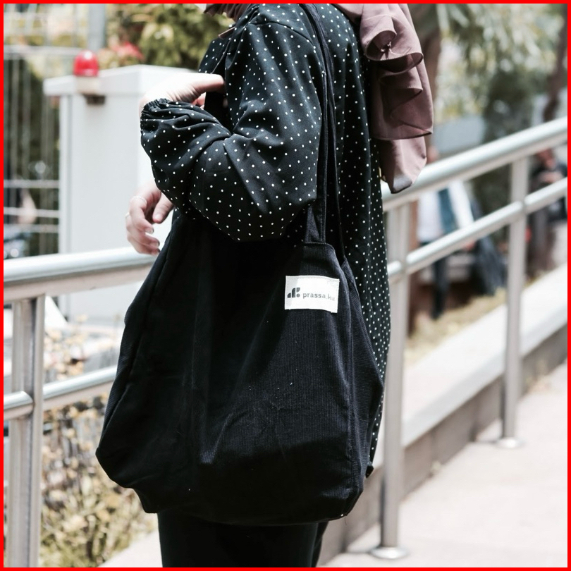 Prassa.ku Facile Cordu.ku Black - Tas Tote Totebag Corduroy