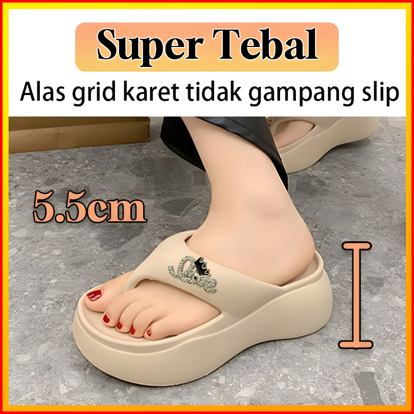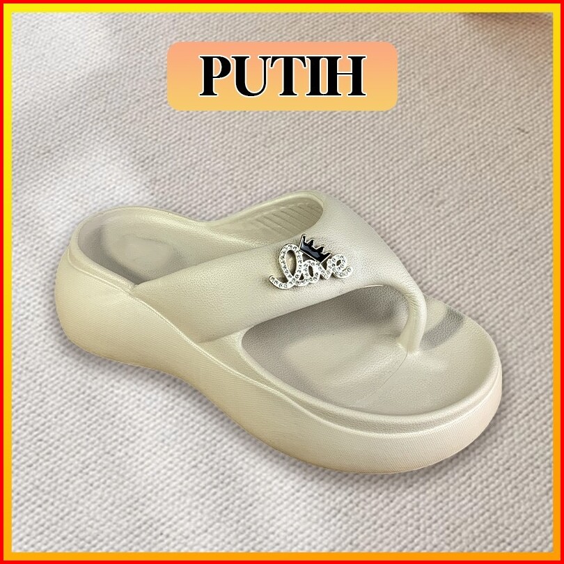 Joymy Sandal Jepit Hak Wanita 5.5cm Tebal Motif Love Empuk Sendal Wanita Elegan Korean Style Anti Slip Kekinian Platform