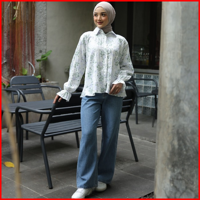 Neva Style - Alea Blouse Motif Bunga Atasan Wanita Lady Sofia Korean Style Blouse Lengan Karet