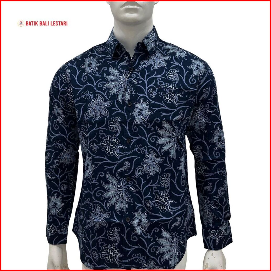 Batik Bali Lestari Kemeja Slimfit Lengan Panjang Biru La2u