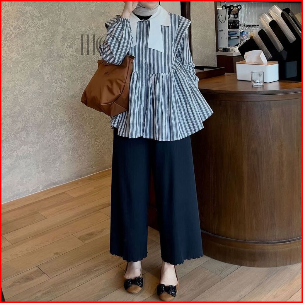 Kemeja Blouse Wanita Garis Oversize Casual Korean Style Ld 110 Hicoo