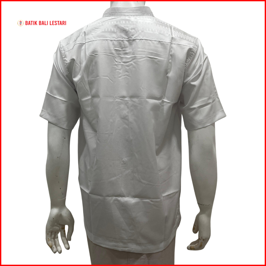Batik Bali Lestari Koko Bordir Lengan Pendek Putih K2be