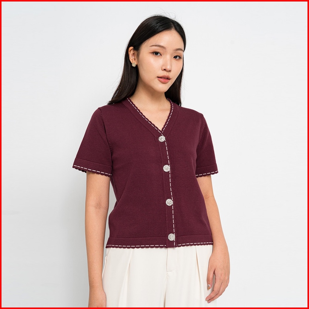 Chocochips - Unice Top Blouse Wanita Knit Rajut Lengan Pendek Korean Style