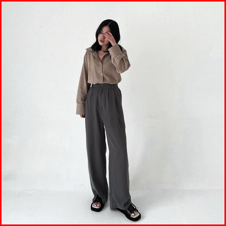 Highwaist Loose Pants Trousers Celana Anti Kusut Wanita