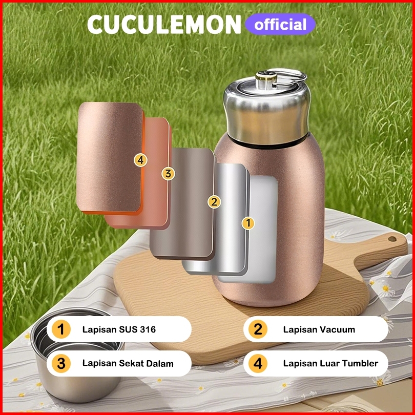 Cuculemo Tumbler Botol Minum Stainless Steel Termos Kopi Tahan Panas Dingin Gelas Kopi Aesthetic