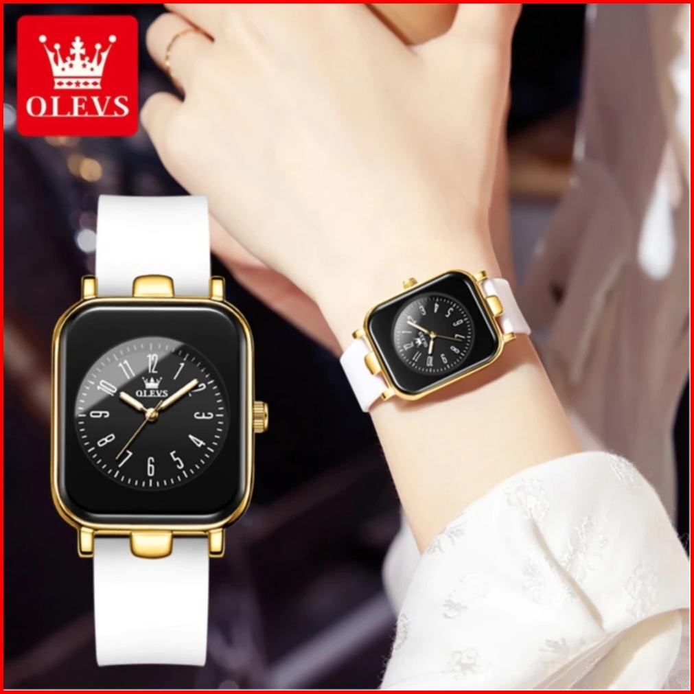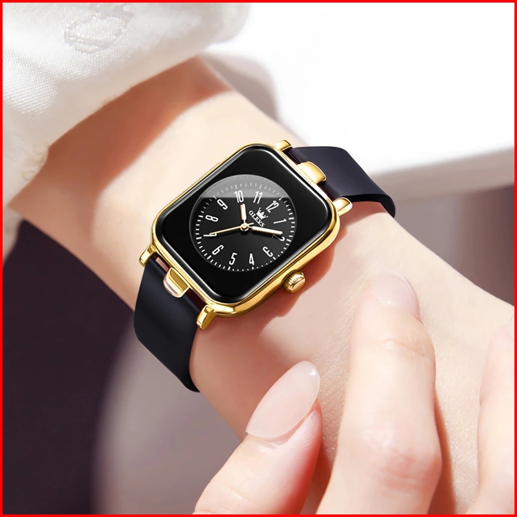 Olevs Jam Tangan Wanita Anti Air Original Silika Gel Tali Rubber Rose Hitam Women Watch 9961
