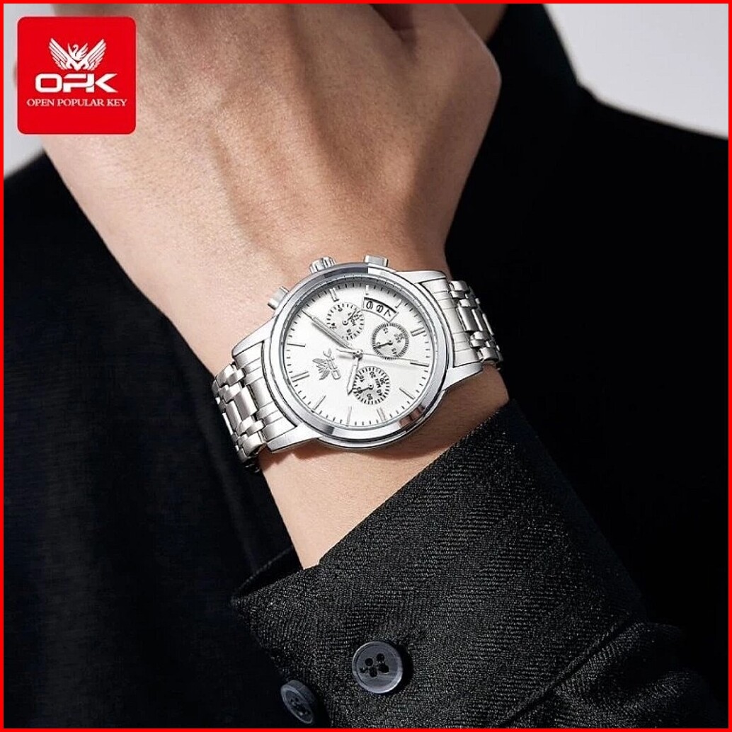 Jam Tangan Opk Pria 6051 Anti Air Original Stainless Steel Chrono Aktif Multifungsi Bisnis Men Watch