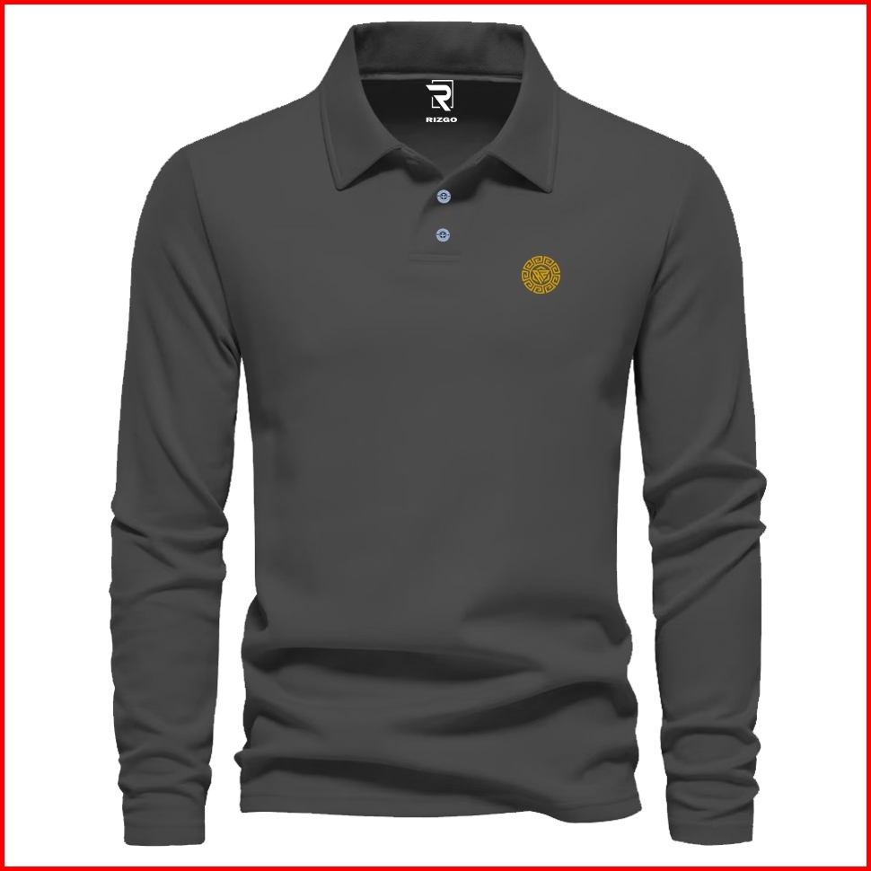 Rizgo - T Shirt Polo Lengan Panjang Rzg Force A1 Text Distro Kerah T-shirt Pria Wanita Tebal Baju Keren