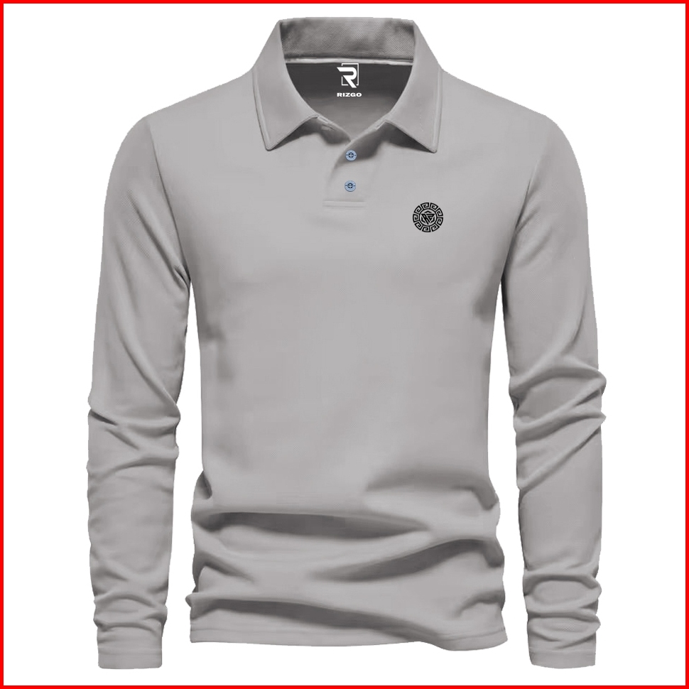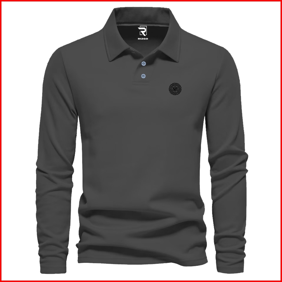Rizgo - T Shirt Polo Lengan Panjang Rzg Force A1 Text Hitam Distro Kerah T-shirt Pria Wanita Tebal Baju Keren