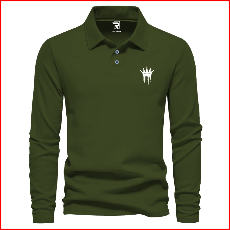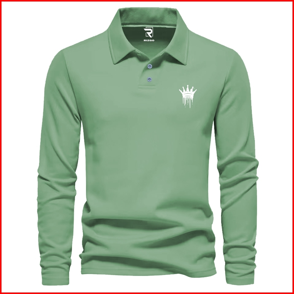 Rizgo - T Shirt Polo Lengan Panjang King Netes Sp Text Putih Distro Kerah T-shirt Pria Wanita Tebal Baju Keren Bahan Kat