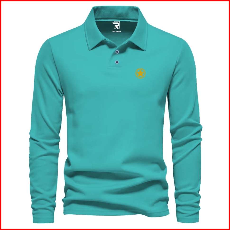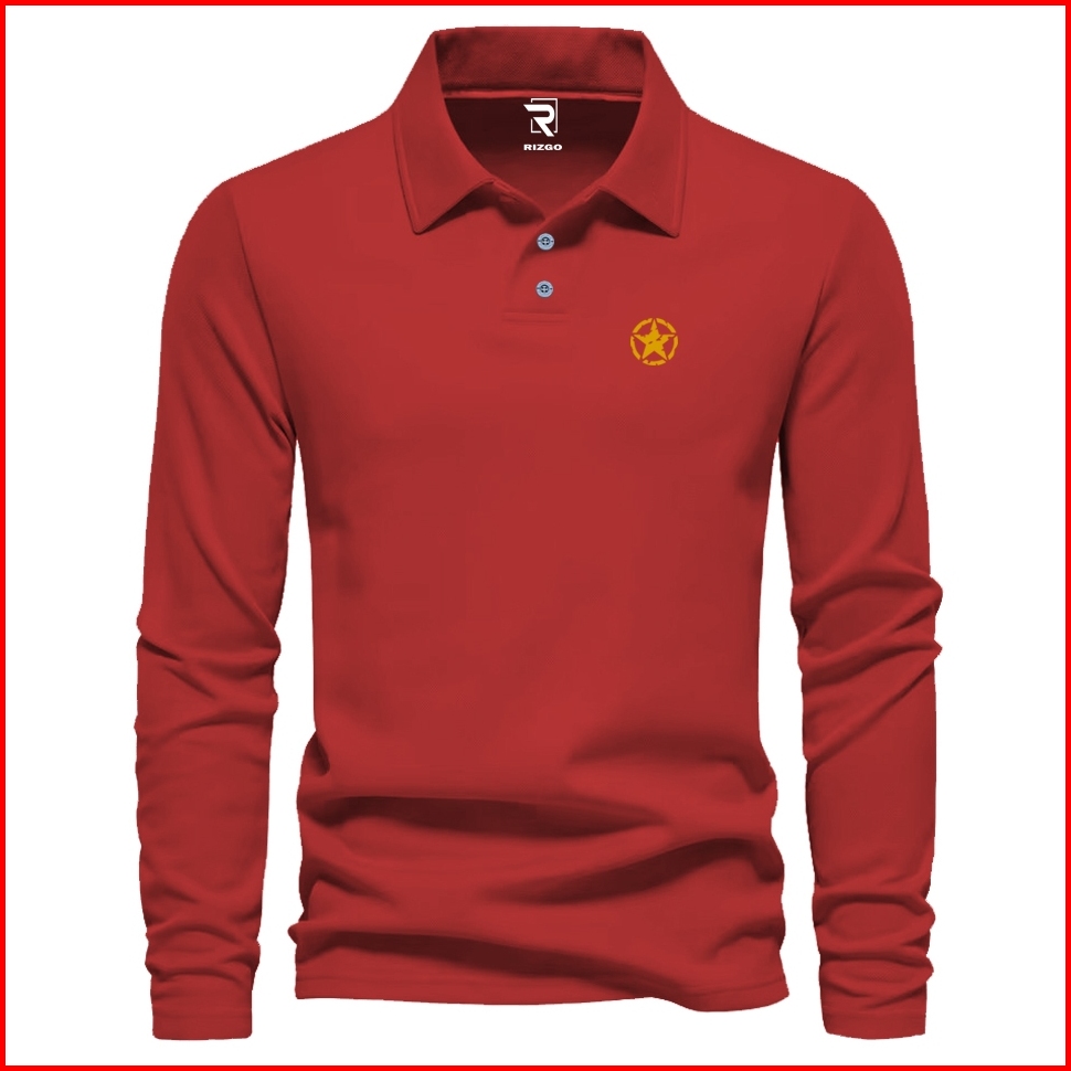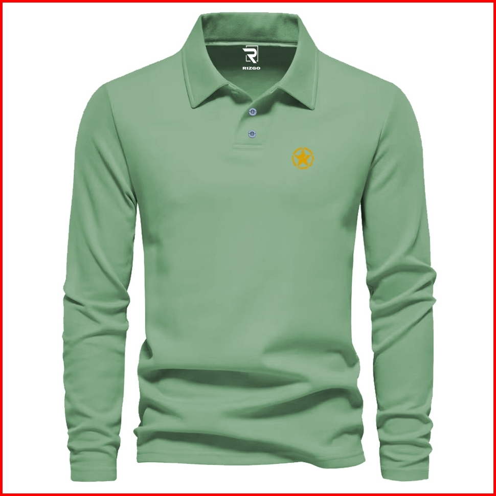 Rizgo - T Shirt Polo Lengan Panjang Star Army Text Distro Kerah T-shirt Pria Wanita Tebal Baju Keren Bahan Katun Pique U