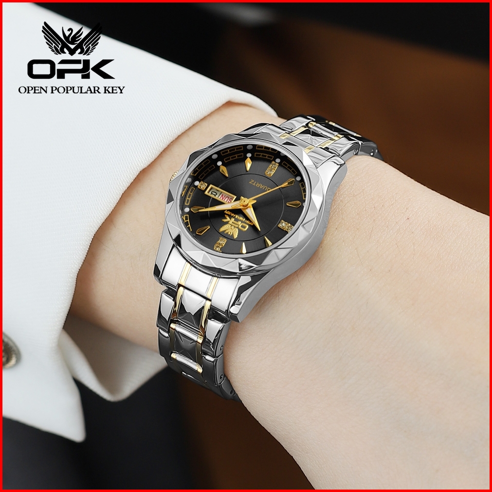 Jam Tangan Opk Wanita 8151 Original Anti Air Kalender Cewek Stainless Steel Style Quartz Women Watch