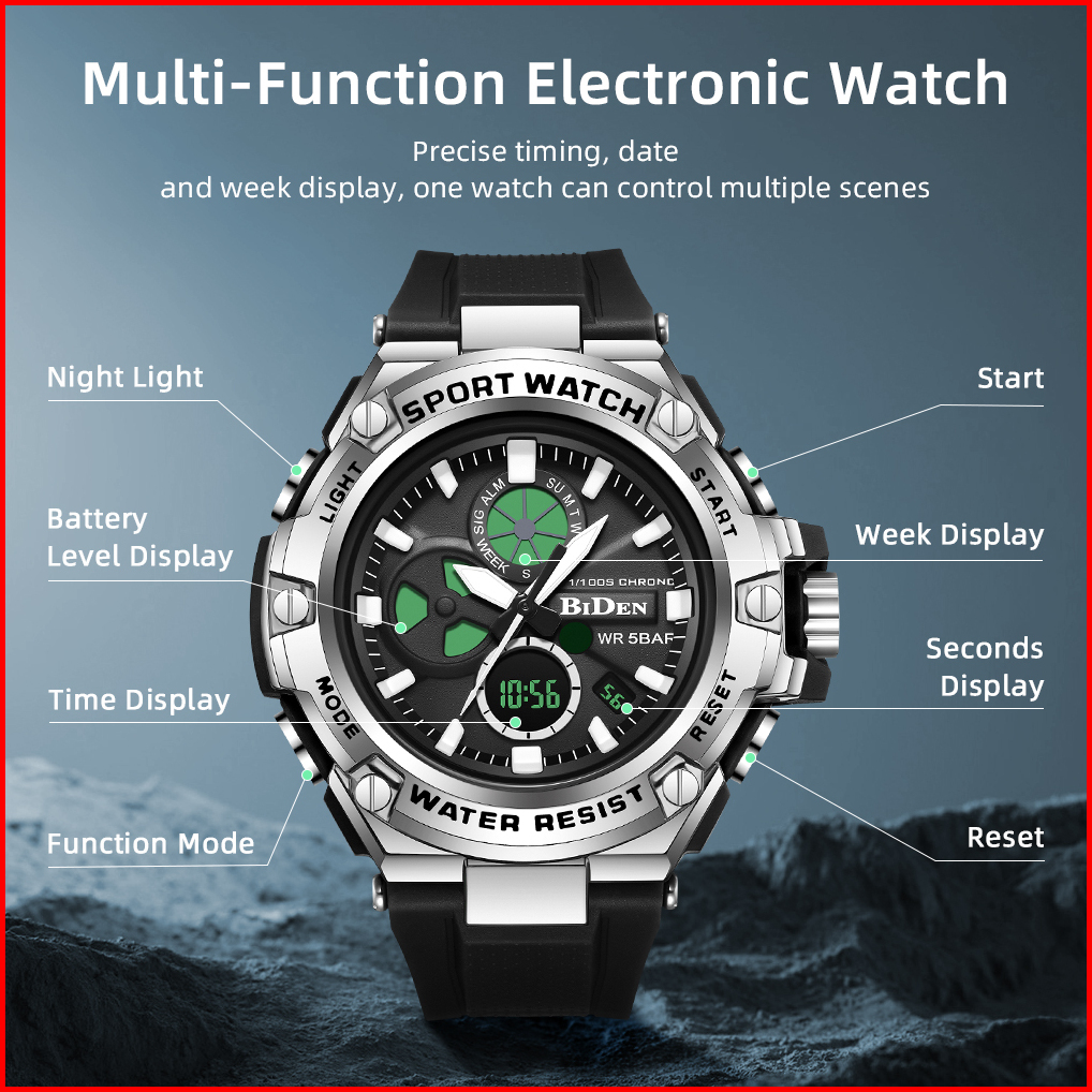 Biden Jam Tangan Pria Digital Analog Anti Air Olahraga Bercahaya Multifungsi Alarm Jam Tangan Cowok Original