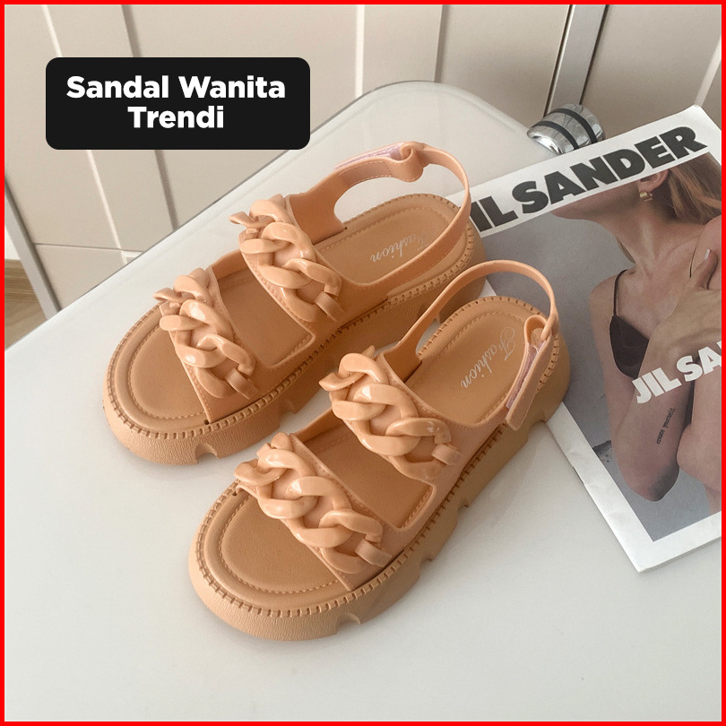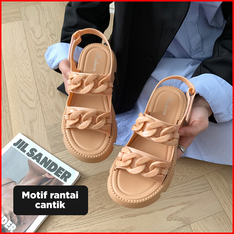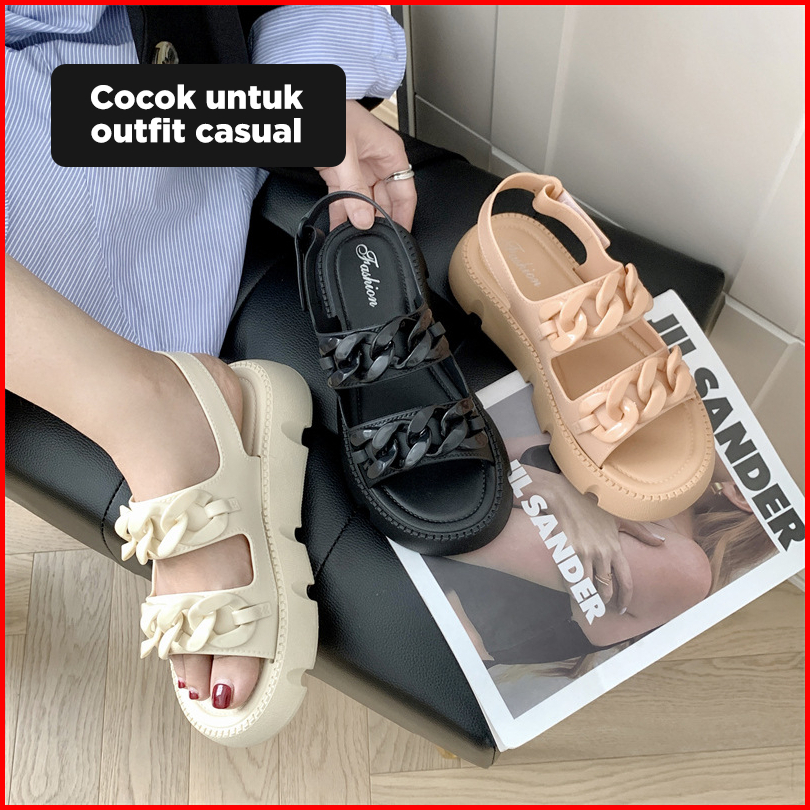 Coolrain Sandal Fuji Wanita Dewasa Korea Premium Sendal Wanita Karet Jelly Wedges Platform Tebal Empuk Tali Belakang Hsn