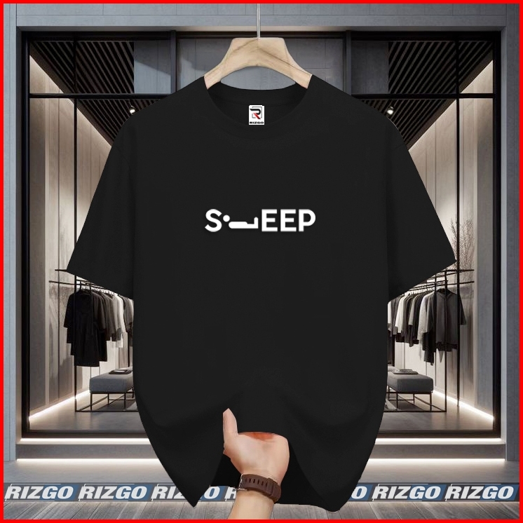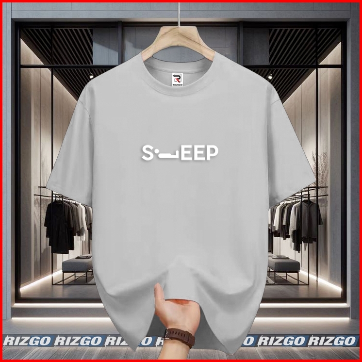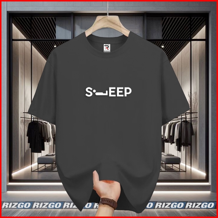 Rizgo - T Shirt Kaos Pendek Sleep Motif Putih Casual Bahan Katun 24s Tebal Nyaman Oblong