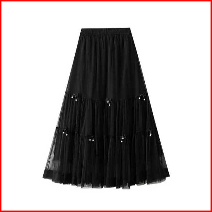 Rok Wanita Korean Style Modis Murah Nyaman Bahan Ceruty Babydoll Full Furing Hiasan Mutiara Terbaru 2025 Rok Simple Eleg