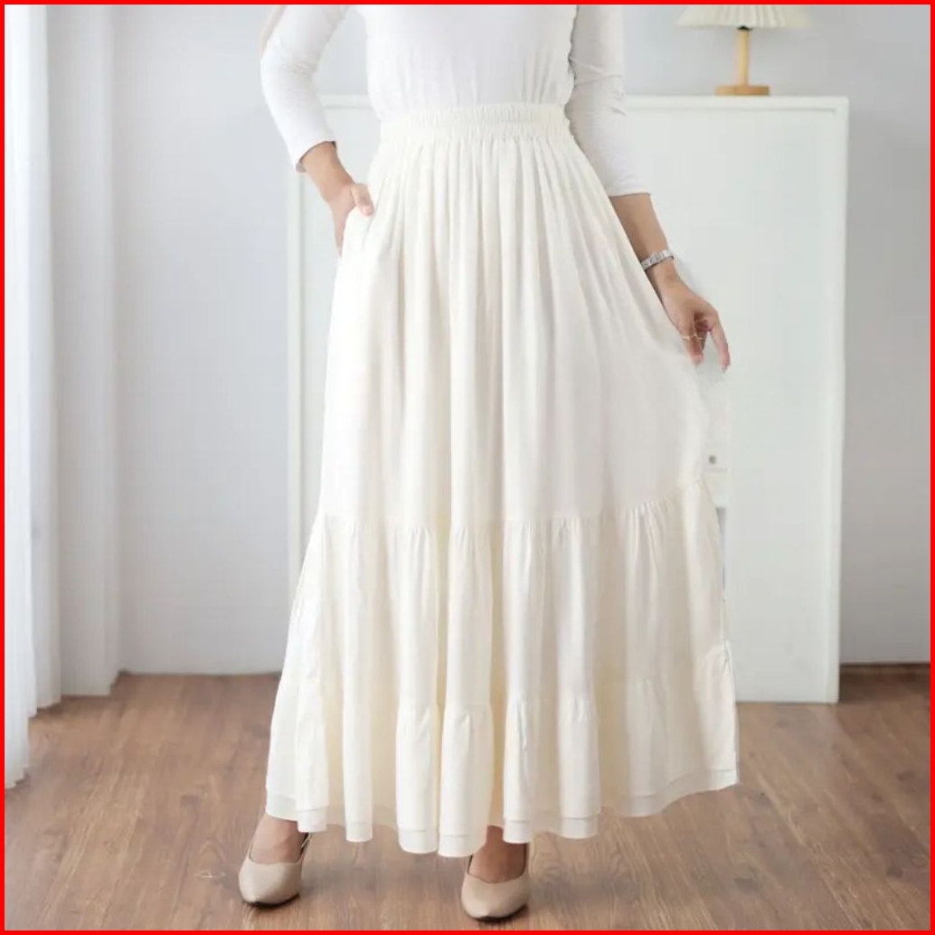Rok Flow Casual Wanita Cantik Korean Style Kain Katun Rayon Bawahan Cewek Dewasa Panjang Naomi Kawaii Skirt Japan Korean