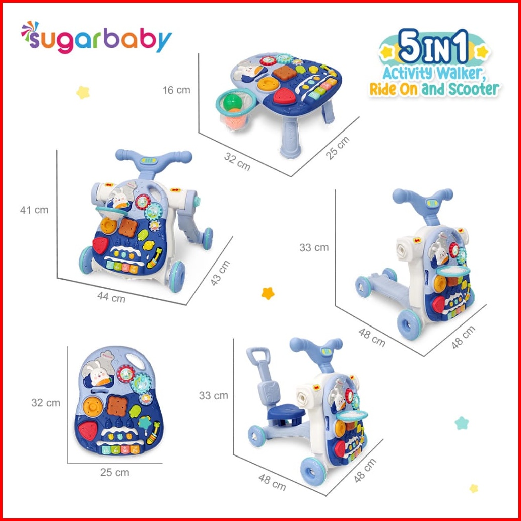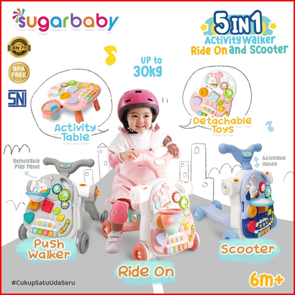 Sugarbaby 5in1 Activity Walker Ride-on And Scooter Push Walker Activity Walker Baby Walker