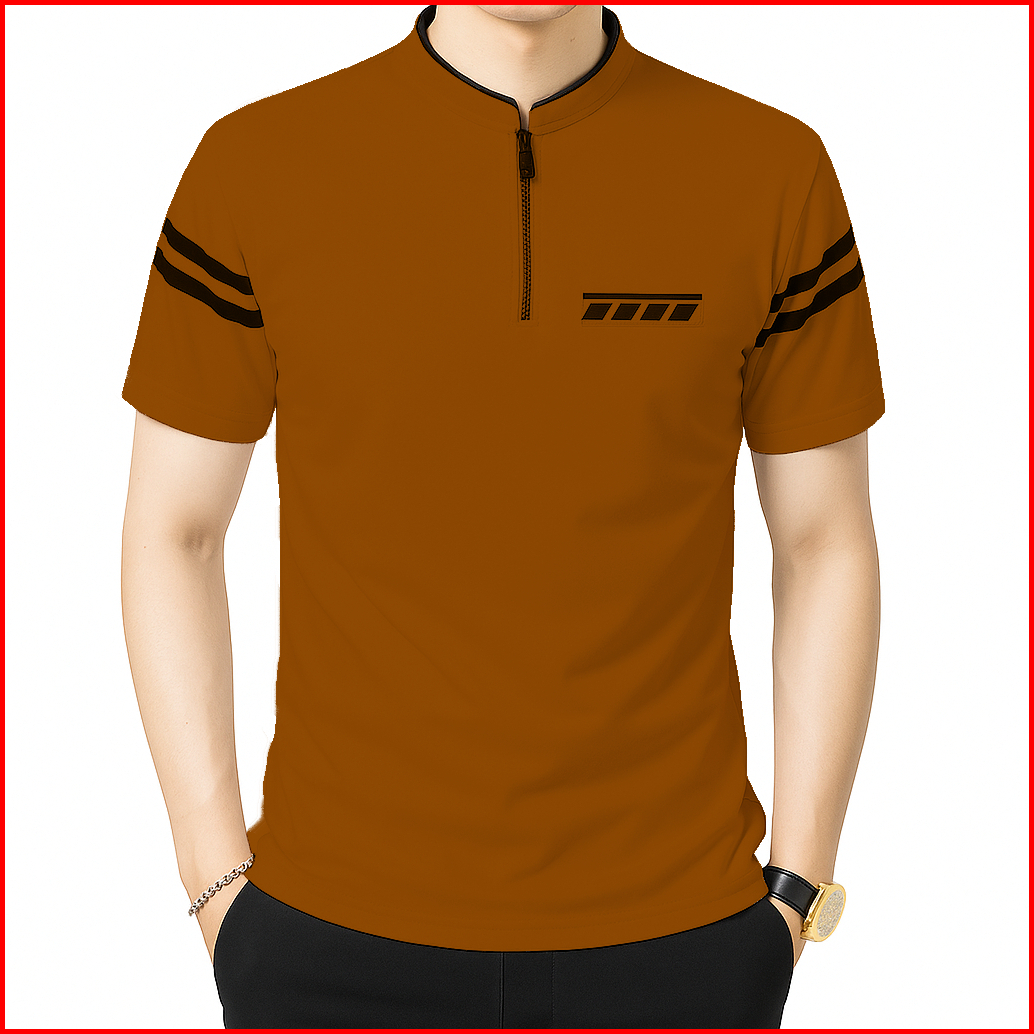 Kaos Pria Kerah Shanghai Saku Polet Lengan Garis Sleting - Kaos Pria Distro Premium Motif Model Zipper Terbaru