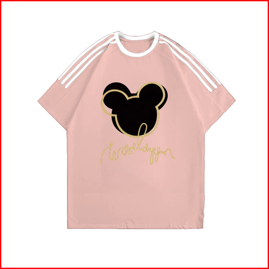 Jessica Tshirt Lengan Pendek Kaos Oversize Garis Tiga Motif Kepala Mickey Mouse Lucu Bahan 100 Cotton