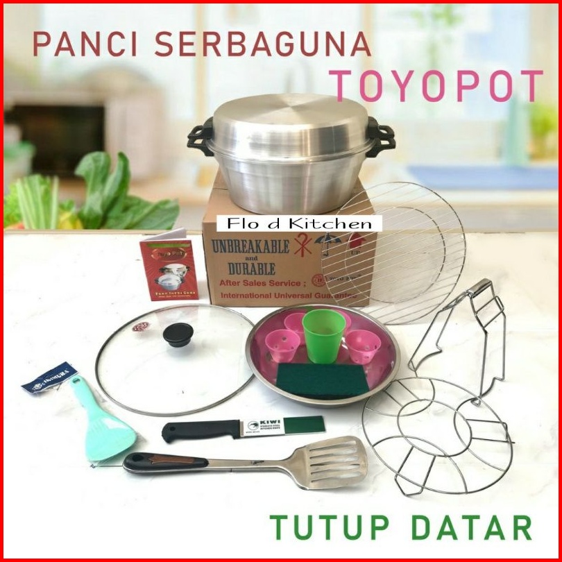 Toyopot Panci Serbaguna Tutup Datar Dan Tutup Datar Kaca