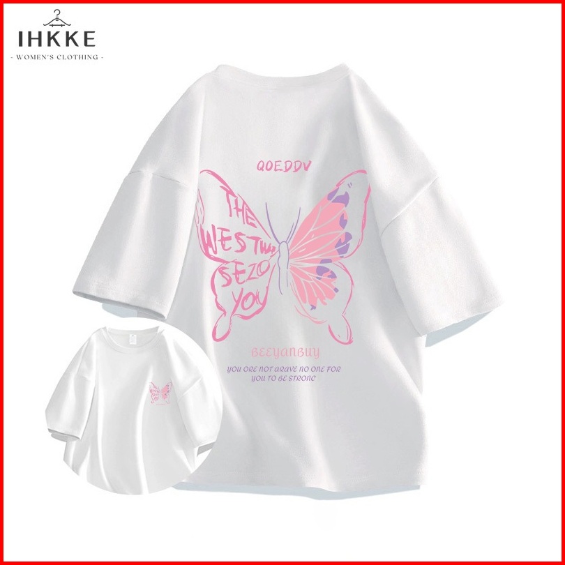 Ihkke Kaos Wanita Baju Oversize Pink Butterfly Korean Style T Shirt 100 Cotton Vintage