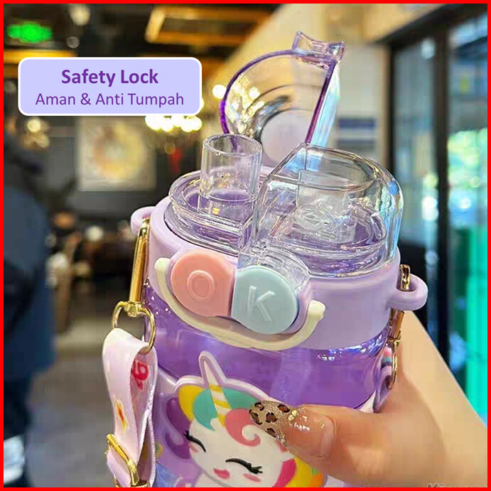 Botol Minum Anak Sekolah Motif Kartun Lucu Botol Minum Anak 2 In 1 Botol Air Anak Dengan Sedotan Water Bottle Pp 029