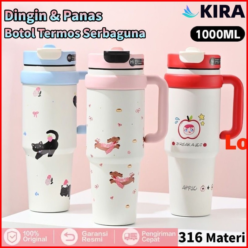 Waterloco Tumbler Stainless Vacuum 1000ml Portable Thermos Botol Minum Besar Tumbler Aesthetic