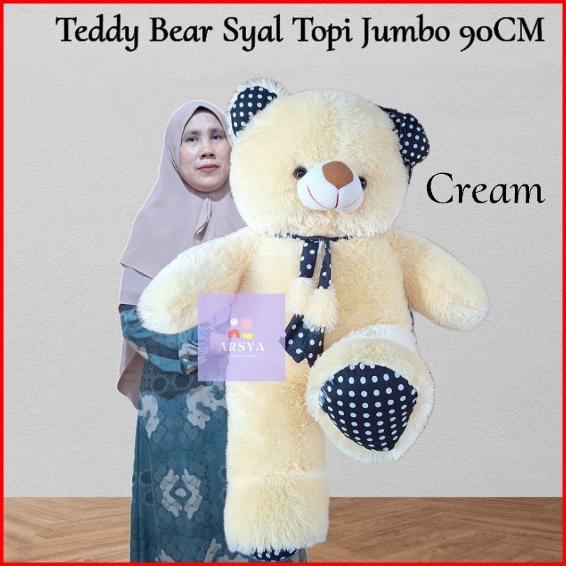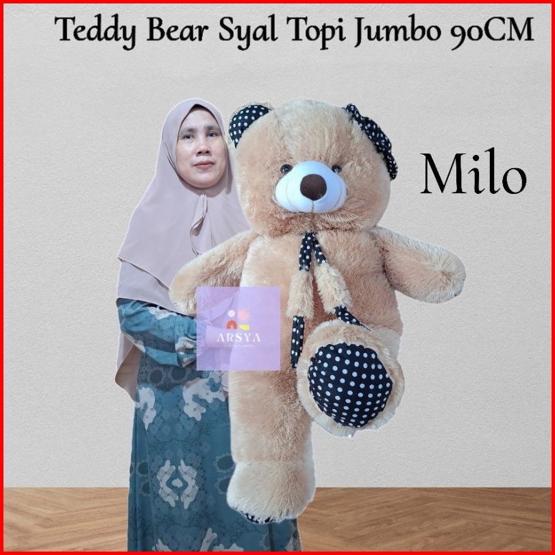Boneka Teddy Bear Jumbo 90cm Syal Topi