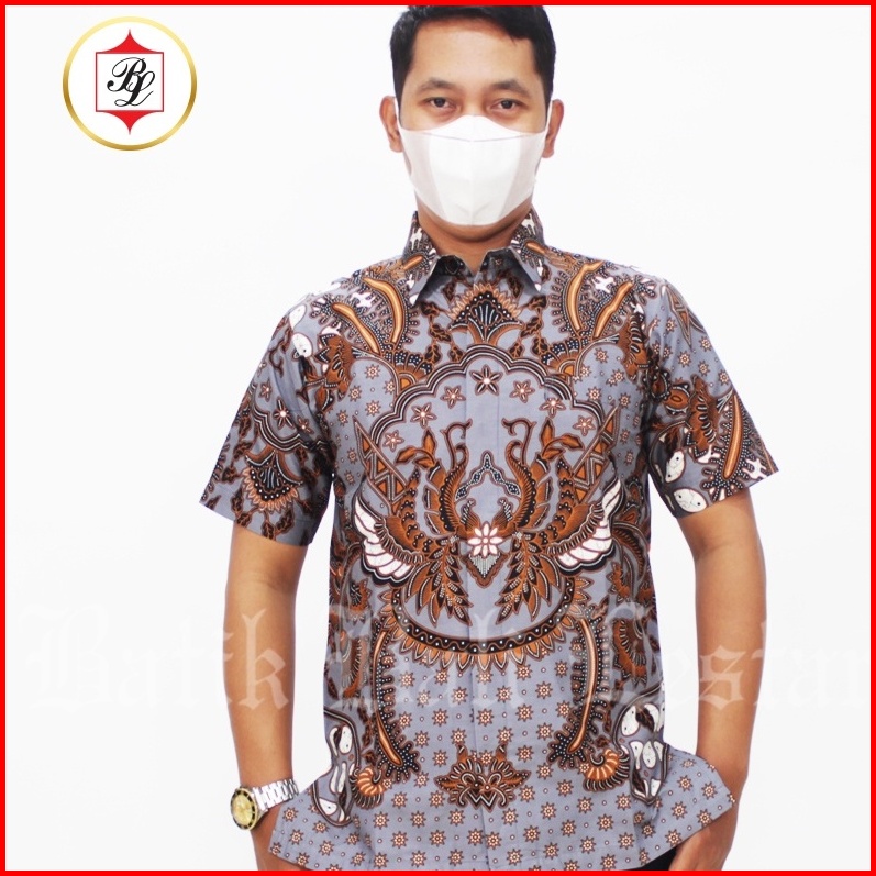 Sale Batik Bali Lestari Kemeja Lengan Katun Pendek Abu Coklat Ok10