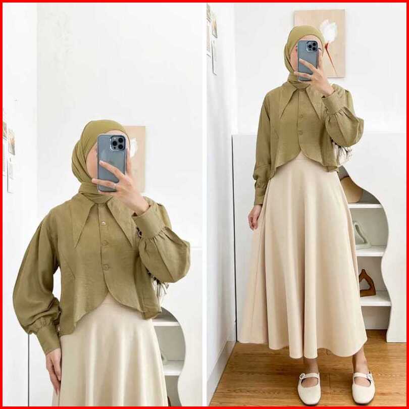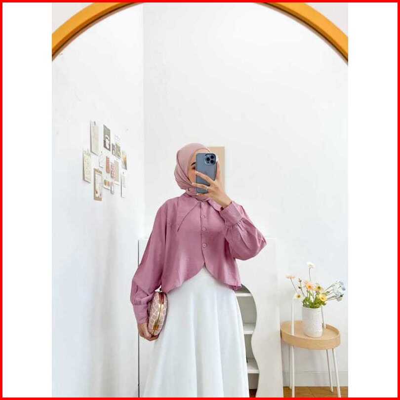 Iznay Fashion - Blouse Lyra Crop Top Wanita Korean Style Lengan Panjang Polo Linen