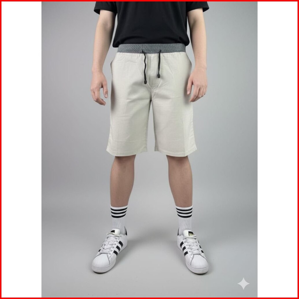 Firzanfashion 27-44 Celana Chino Pendek Pria Mick Pinggang Karet Rip Katun Twill Krem Coklat Surfing