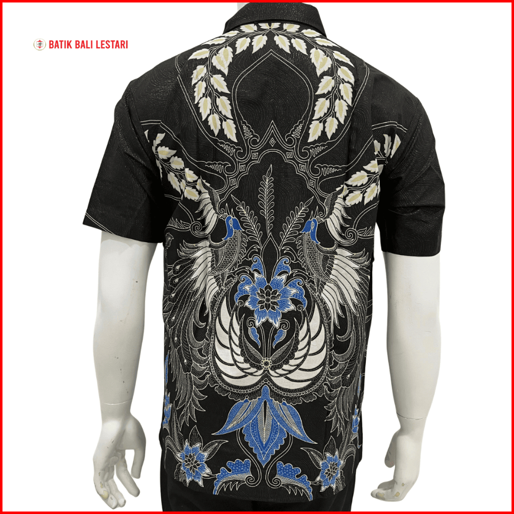Batik Bali Lestari Batik Pria Katun Prada Lengan Pendek Hitam Pb01