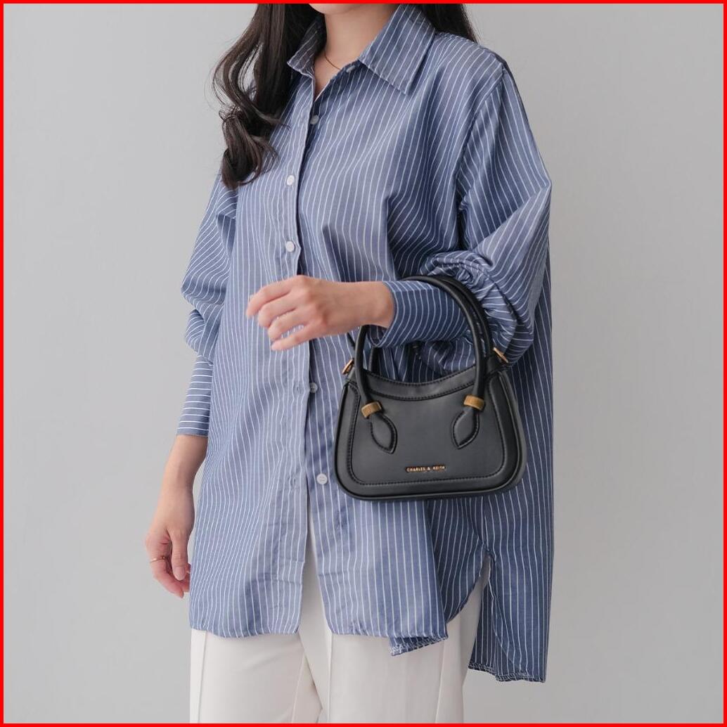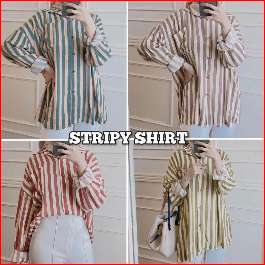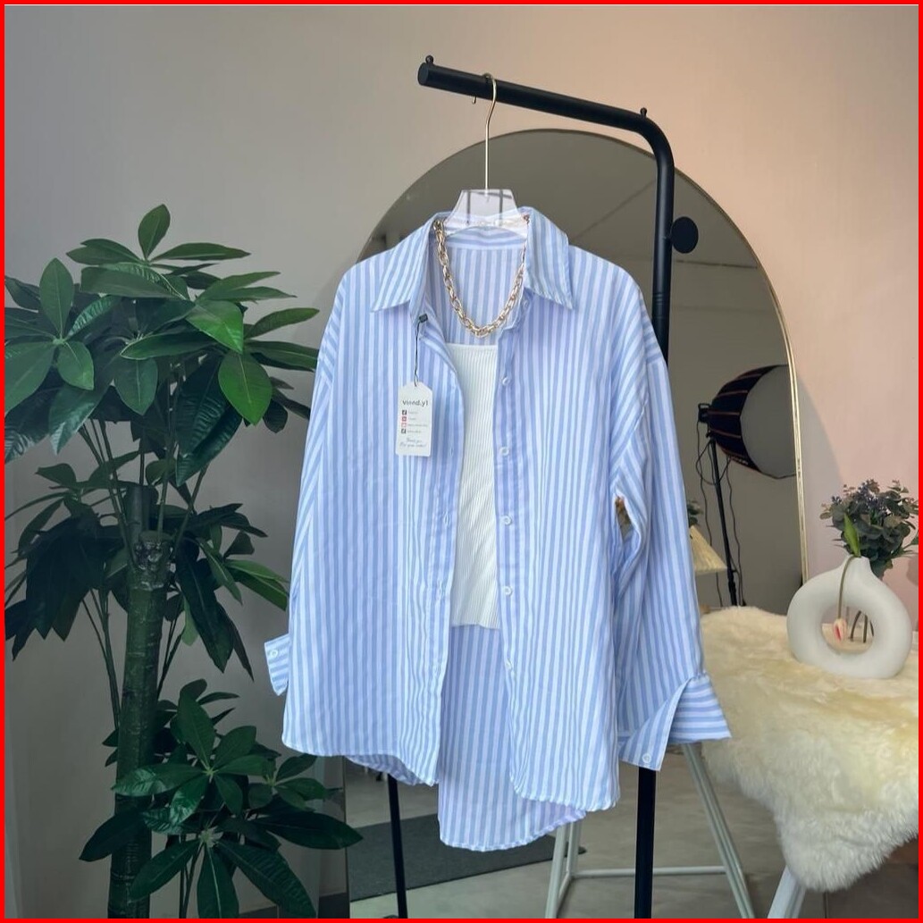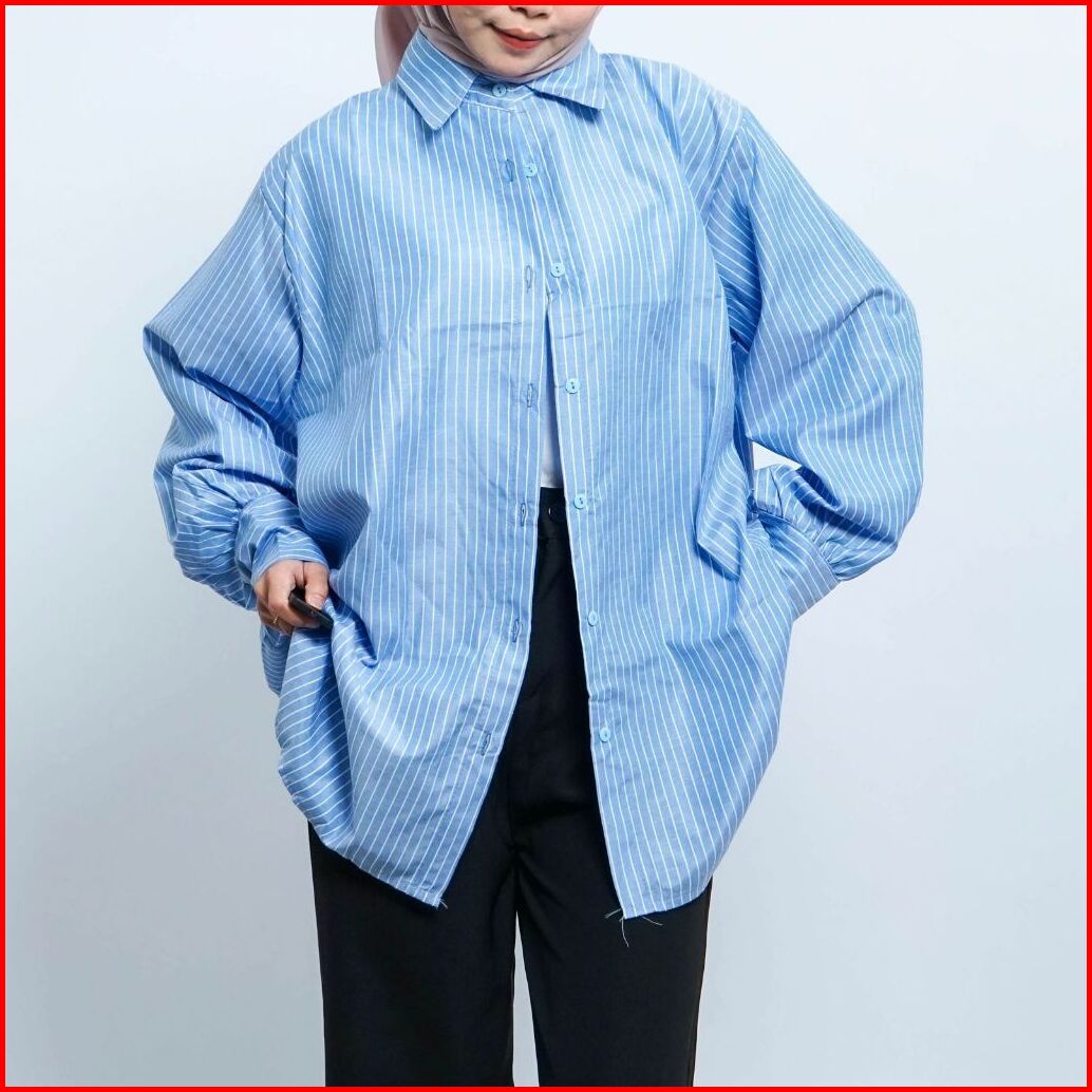 Kemeja Salur Wanita Kemeja Korea Lengan Panjang Kemeja Wanita Kemeja Stripe Oversized - Atasan Wanita