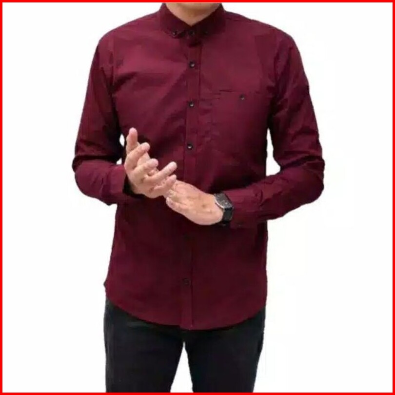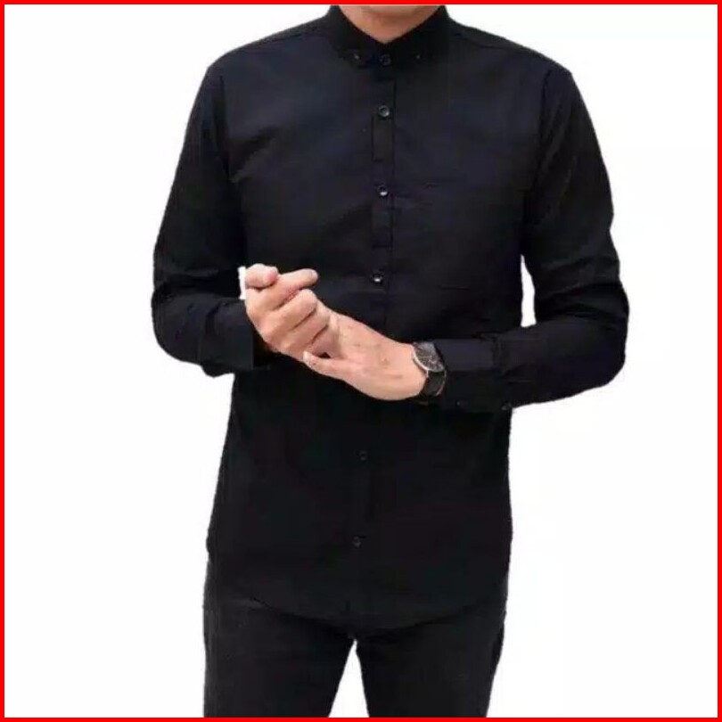 Firzanfashion M-xl Terhitz Kemeja Putih Panjang Pria Cowok Gatlemen Cowok Biru Navy Dongker Polos Formal Kantor Murah