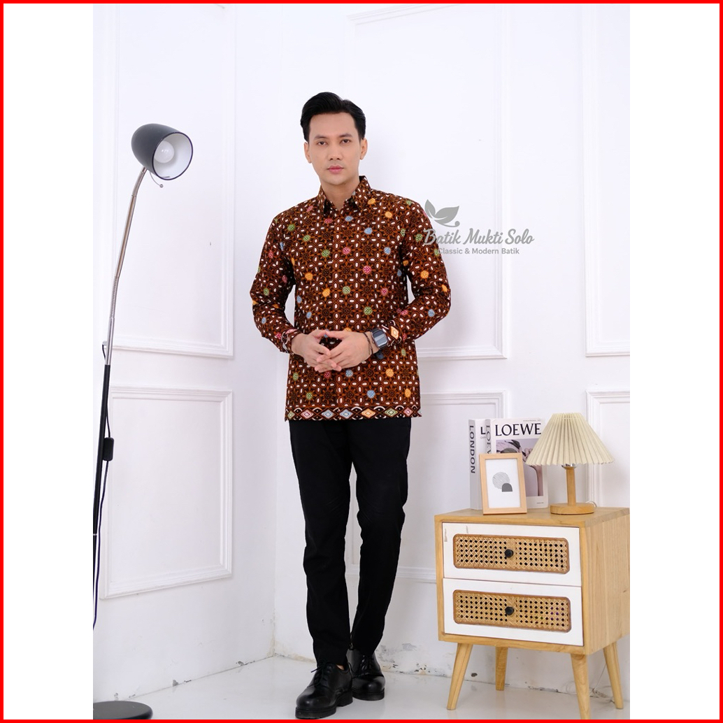 Batik Mukti Solo- Kemeja Pria Lengan Panjang Kombinasi Tulis T01