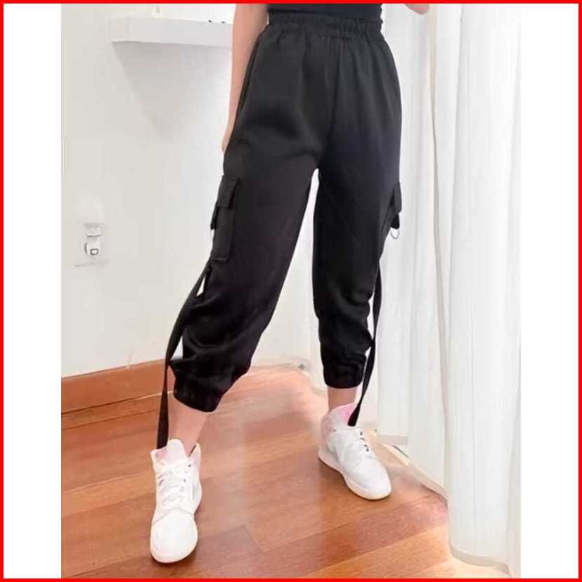 Firzanfashion Cargo Pants Wanita Celana Cargo Scuba Celana Jogger Korean Style Kekinian Hitam Putih