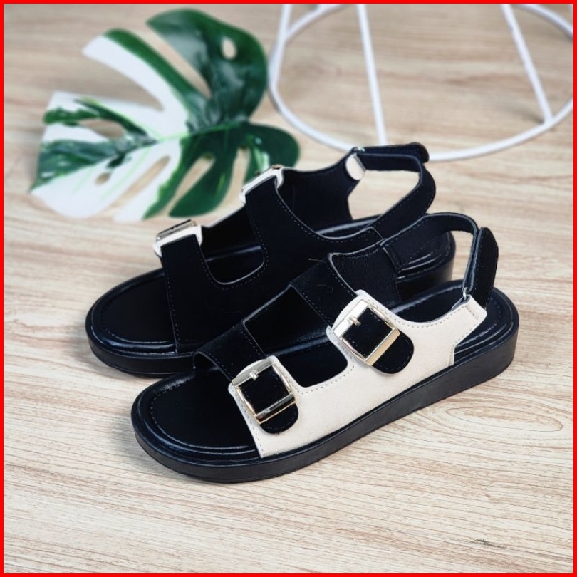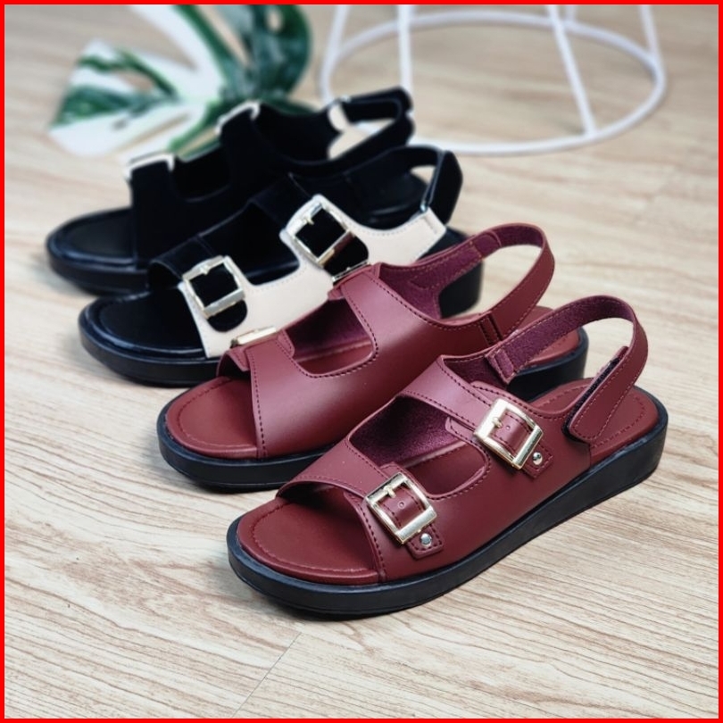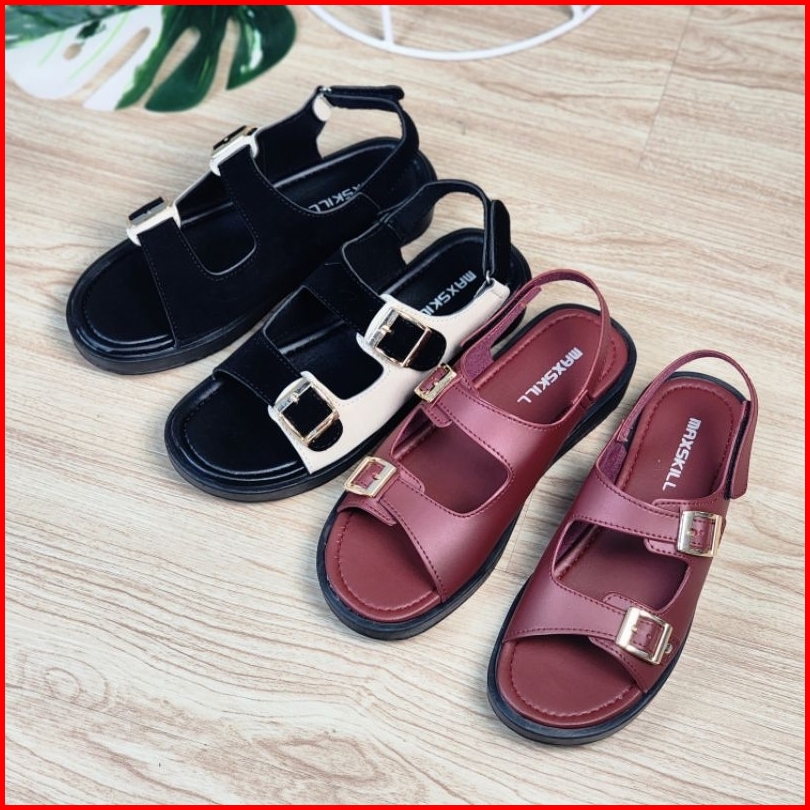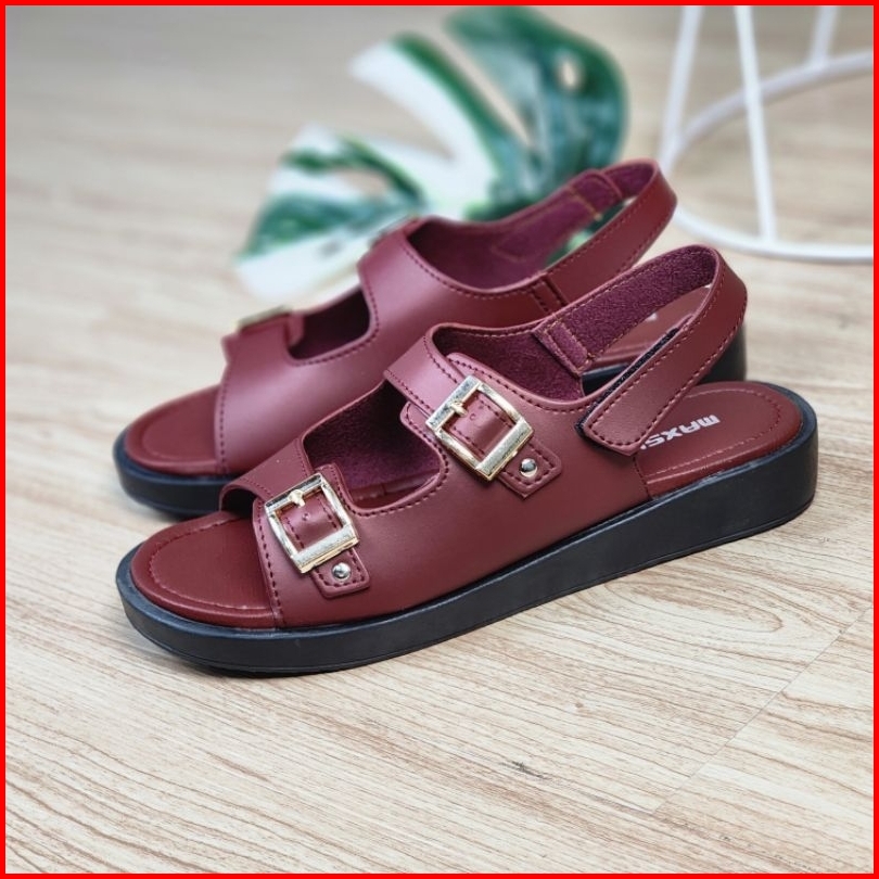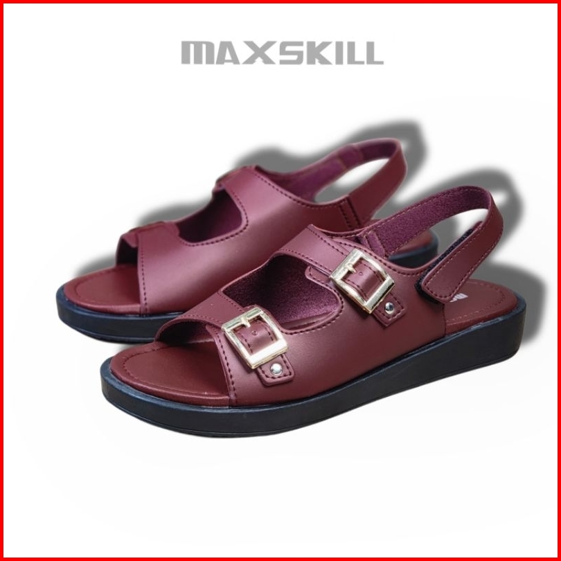 Maxskill Aghata Burgundy Sandal Flat Wanita Hitam Bludru