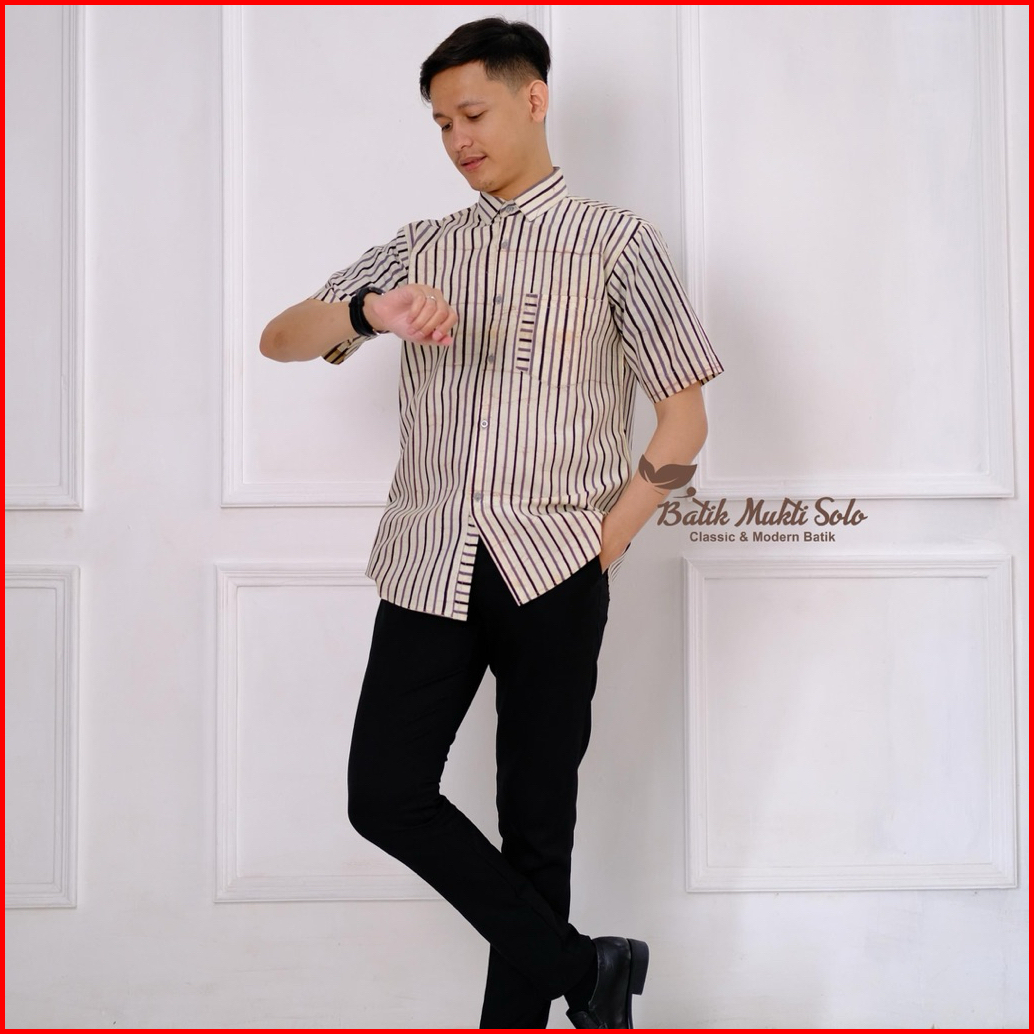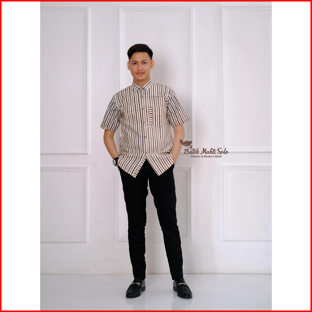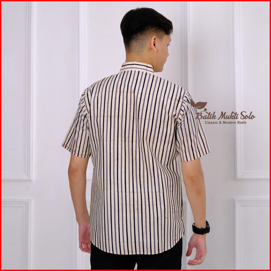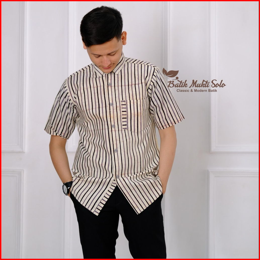 Batik Mukti Solo - Kemeja Batik Cap Indigo Bledak Lengan Pendek Premium
