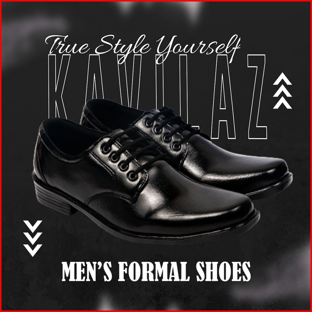 Kavilaz True Style Yourself Sepatu Pantofel Hitam Pria Formal Kantor Leather Tali Kode Z3