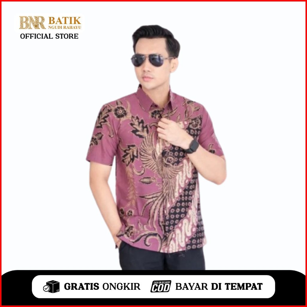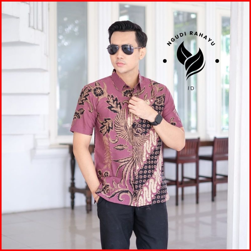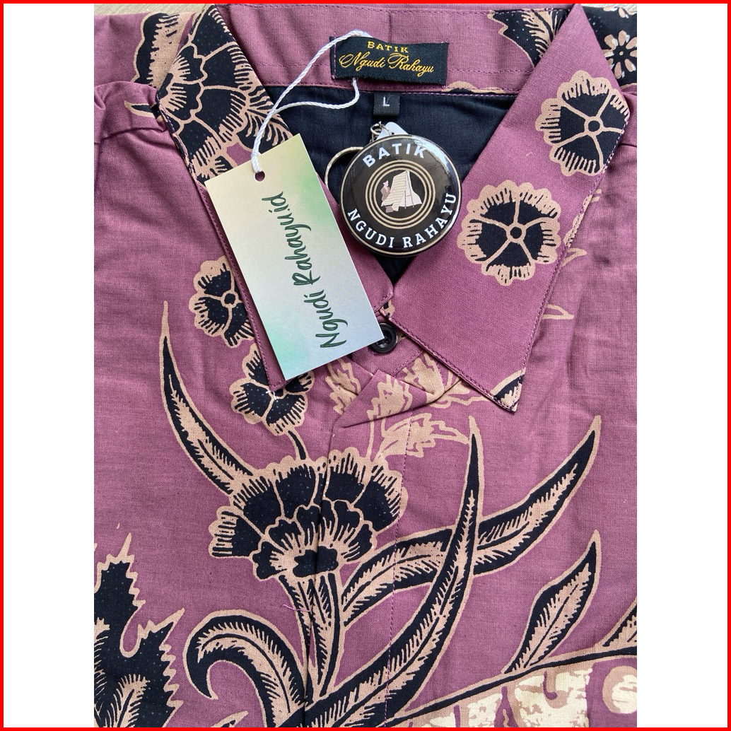 Batik Ngudi Rahayu - Kemeja Batik Slimfit Reguler Lengan Pendek Motif Kencono Ungu